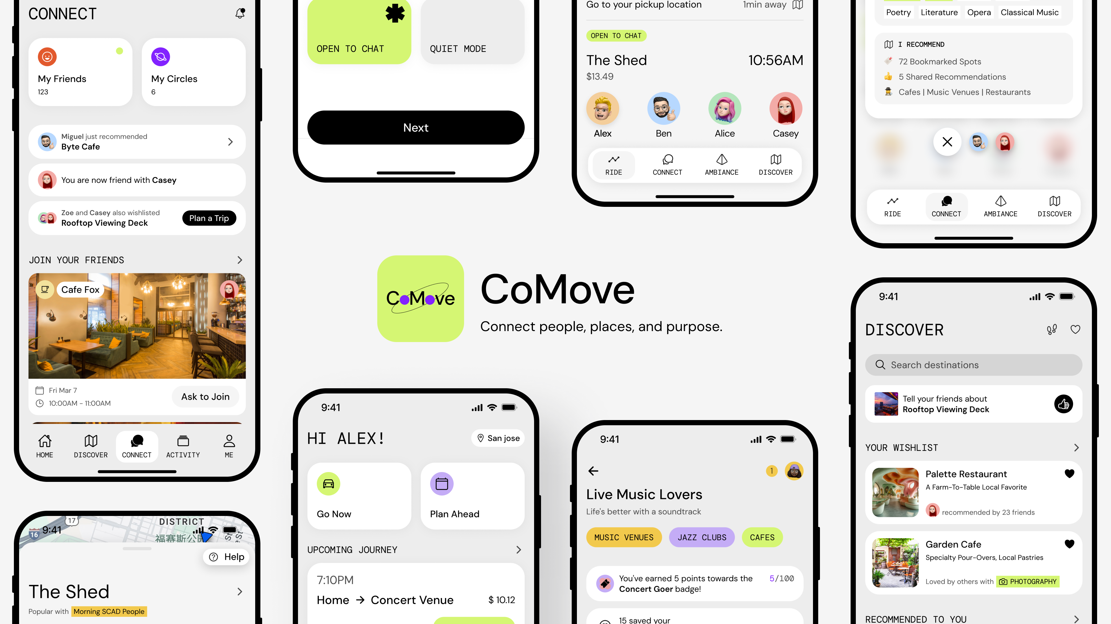 An award-winning mobility concept using systems-driven UX design to explore shared transportation as a platform for social connection. The project combines research, service architecture, and visual storytelling into a cohesive future-facing ecosystem.