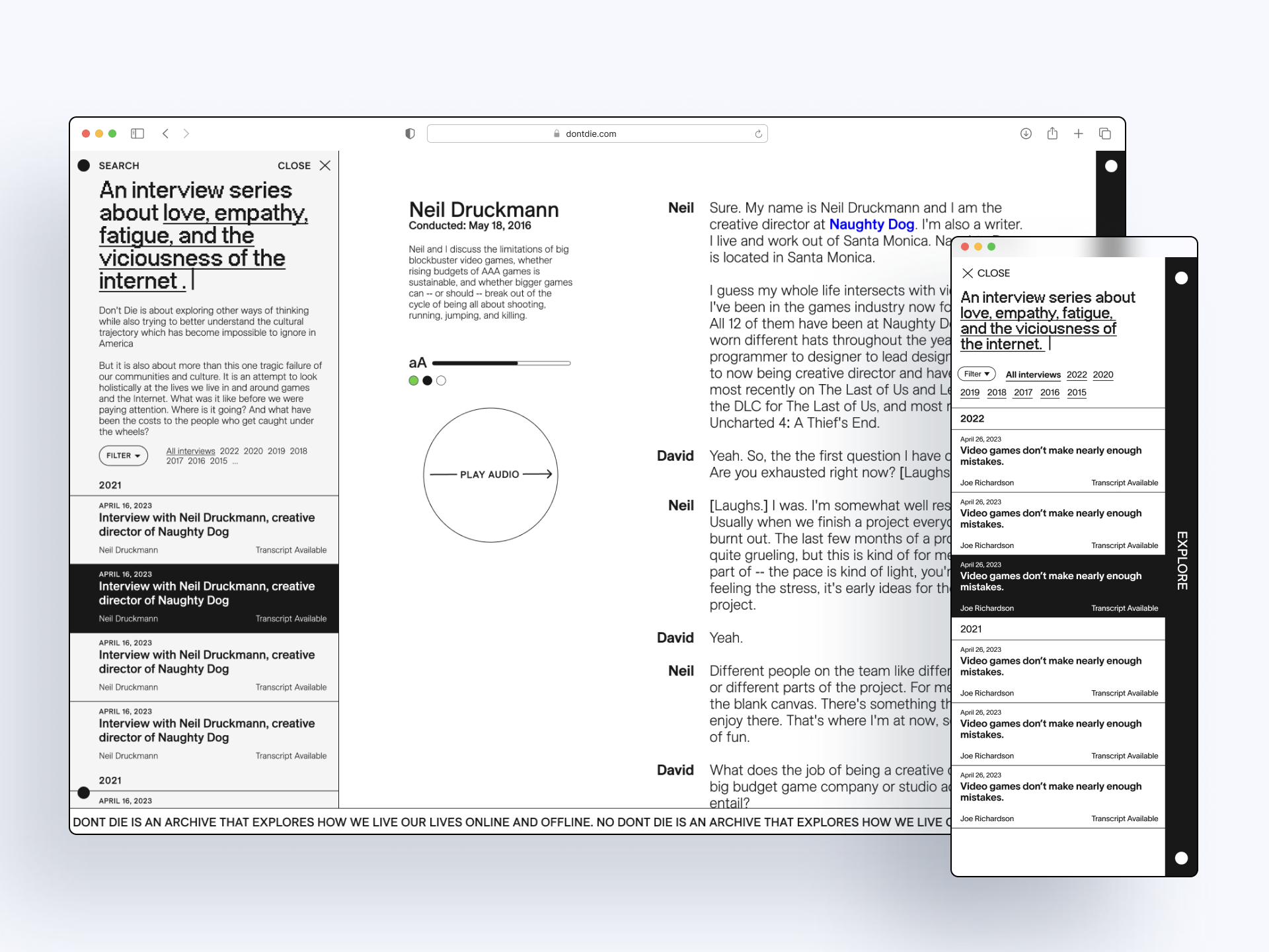 Improving the Exploration and Content-Consuming Experience of an Online Archive of Interviews.